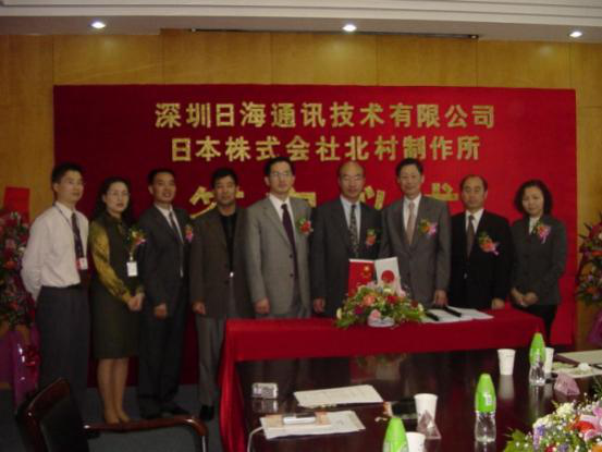 2004年4月13日,公司与日本株式会社北村制作所就户外一体化机房的设计、生产、销售和服务在球友会qy智能签订了合作协议,共同合资组建深圳北村球友会qy机房技术有限公司,并举行了隆重的签字仪式。公司周展宏董事长、王文生总裁、杨飞董事、机房事业部负责人孟庆光和日本北村制作所北村泰作董事长、永井正幸常务董事等出席了签字仪式。